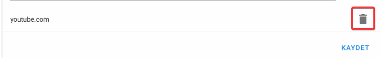 5. Engellenenler veya İzinliler listesinden web sitesi veya siteleri kaldırmak için ilgli web sitenin veya sitelerin sağında bulunan çöp kutusu ikonuna tıklayarak listeden kaldırabilirsiniz.